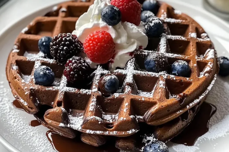 Nehme die frisch gebackenen aromatischen Schokoladenwaffeln vorsichtig aus dem Waffeleisen. Serviere sie sofort, garniert mit Schlagsahne, frischen Beeren oder Schokoladensauce für einen besonders köstlichen Frühstücksgenuss. Genieße es, diese besonderen Waffeln mit deiner Familie zu teilen!