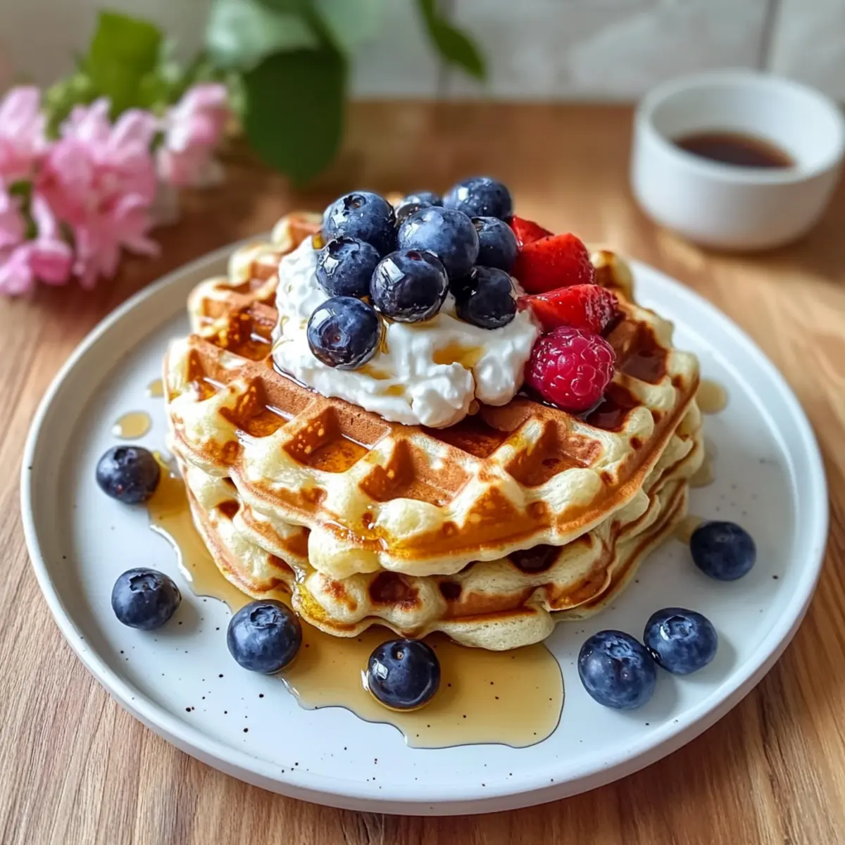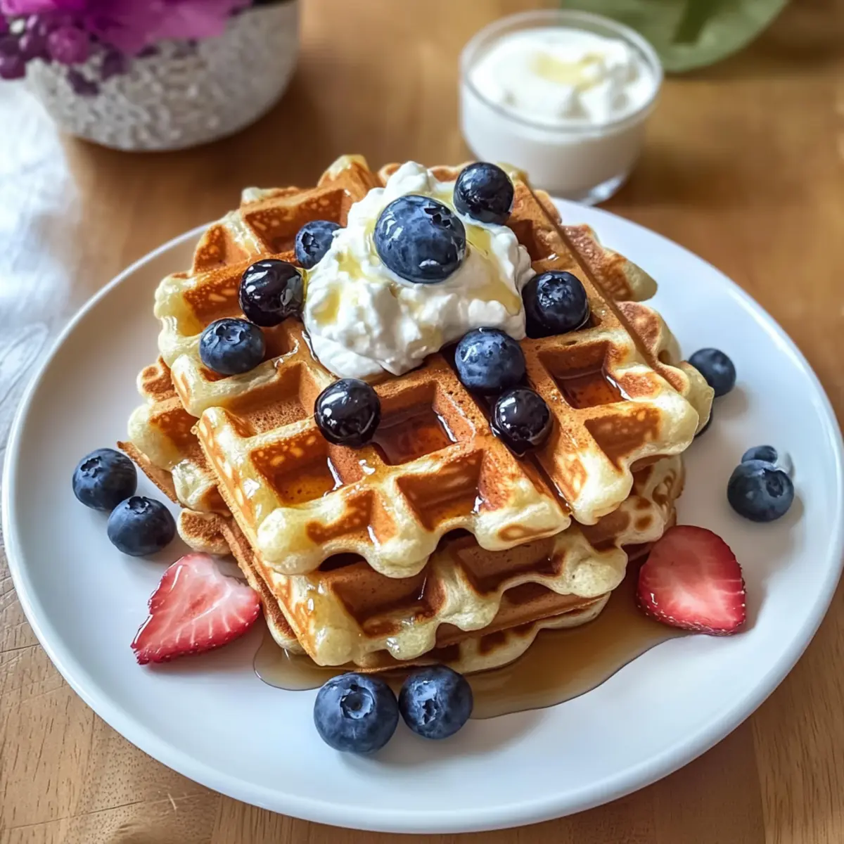 Griechischer Joghurt: Cremig und proteinreich, bietet er die perfekte Balance zur Textur der Waffeln und ein kühlendes Element, das deine Geschmacksknospen verwöhnt.