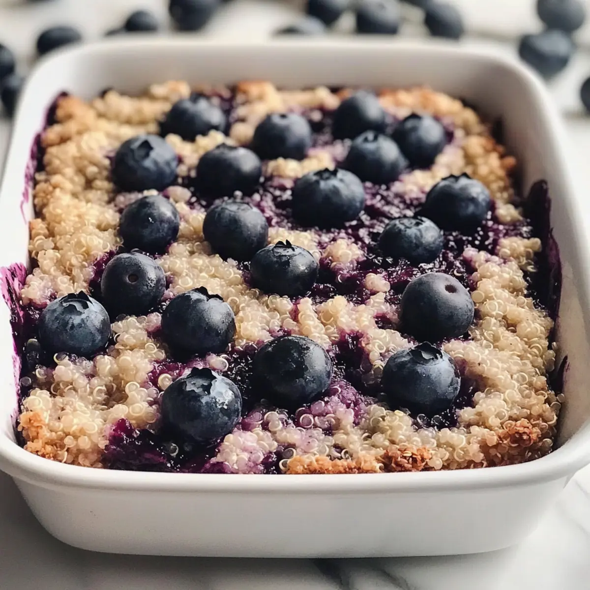 Einfachheit: Die Zubereitung dieses Blaubeer Quinoa Frühstücksauflaufs ist kinderleicht und erfordert nur grundlegende Kochkenntnisse. Vielseitig: Ob frisch gebacken oder aufgewärmt, dieser Auflauf schmeckt immer! Gesund: Er ist reich an Ballaststoffen und Proteinen, ideal für einen energiegeladenen Start in den Tag. Vielfalt: Probieren Sie verschiedene Früchte oder Gewürze aus, um Ihre eigene Note hinzuzufügen. Familienfreundlich: Selbst die wählerischsten Esser werden diesen leckeren Frühstücksgenuss lieben. Vorbereitung: Bereiten Sie ihn am Abend zuvor zu und genießen Sie ein köstliches Frühstück ohne Stress – eine perfekte Wahl für Ihr Meal-Prep.