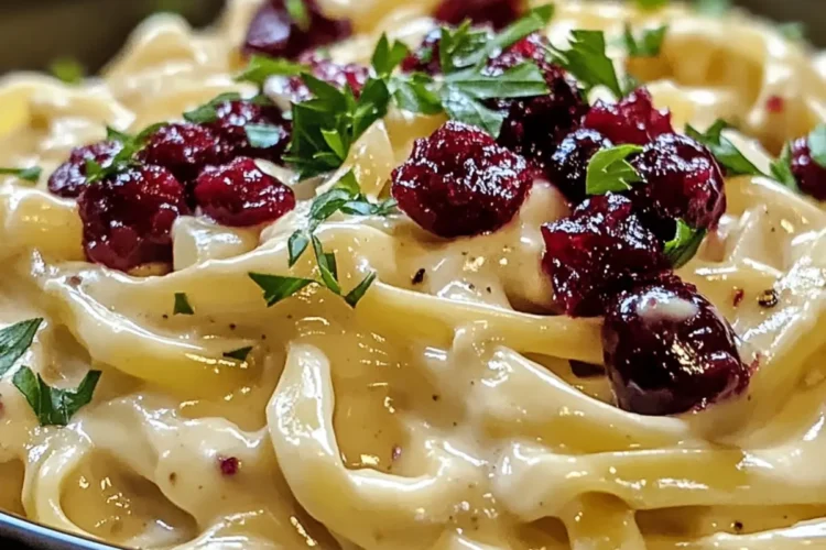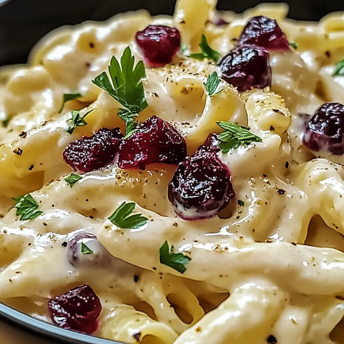 Richte die Brie-Pasta-Preiselbeeren auf Tellern an und garniere sie mit frisch gehackter Petersilie und optional geriebenem Parmesan. Serviere das Gericht sofort, um die cremige Textur und die reichen Aromen in vollem Umfang zu genießen.