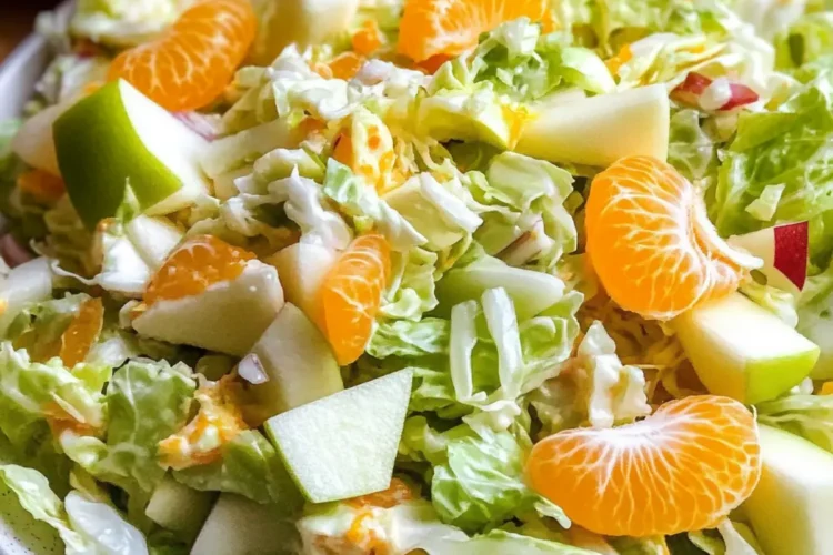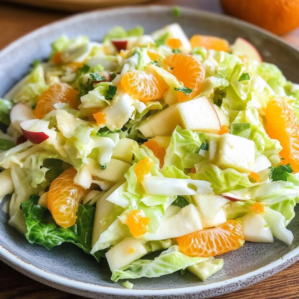 Ein köstlicher Chinakohlsalat mit Mandarinen und Apfel, perfekt für eine gesunde Mahlzeit.