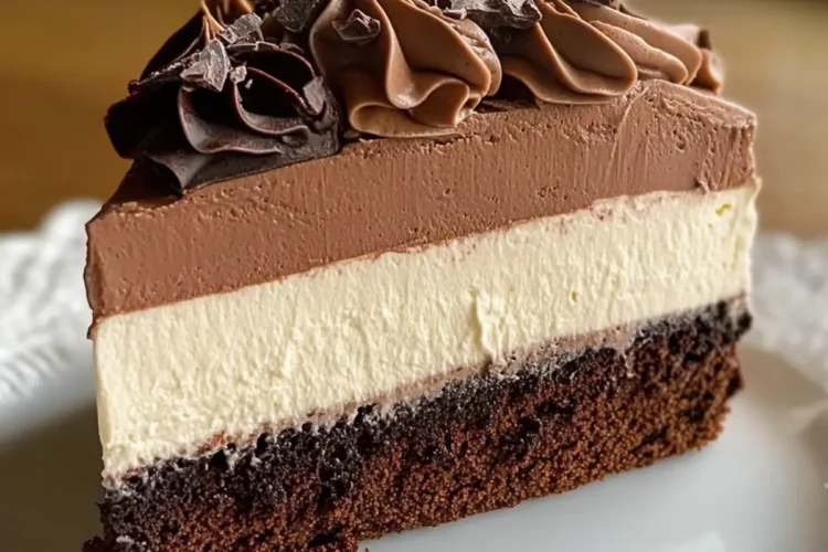 Dreifach Schokoladenmousse Kuchen für Schokoladenliebhaber