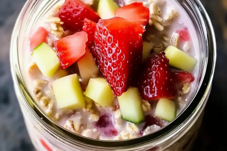 Schritt-für-Schritt-Anleitung für Erdbeer Rhabarber Protein Overnight Oats