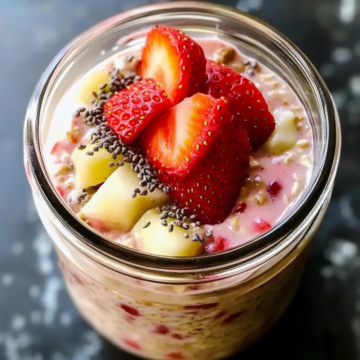 Vor dem Servieren rührt ihr die Overnight Oats gut um, um sicherzustellen, dass sich die Zutaten gleichmäßig vermischen. Ihr könnt die Oats direkt aus dem Kühlschrank genießen und nach Belieben mit zusätzlichen Erdbeeren, Nüssen oder Samen garnieren.