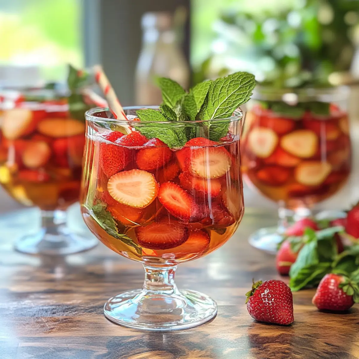 Um die Erdbeerbowle zusätzlich zu verschönern, können Sie die Optionale Zusätze wie Orangenscheiben, Limettenscheiben oder frische Minzblätter hinzufügen. Diese verfeinern nicht nur den Geschmack, sondern sorgen auch für eine ansprechende Präsentation in Ihrer Schüssel oder Gläsern.
