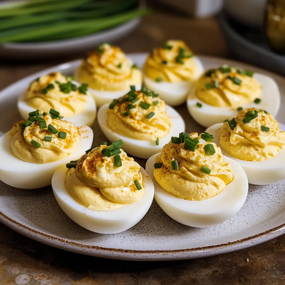 Kreative Garnierungen: Experimentiert mit verschiedenen Garnituren wie Kräutern oder Gewürzen. Diese kleinen Extras machen den Unterschied und verleihen den gefüllten Eiern einen individuellen Touch.