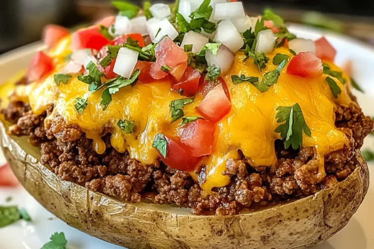 Diese gefüllten Kartoffeln mit beladenem Rindfleisch-Taco sind das perfekte Abendessen, das Komfort und Geschmack vereint.