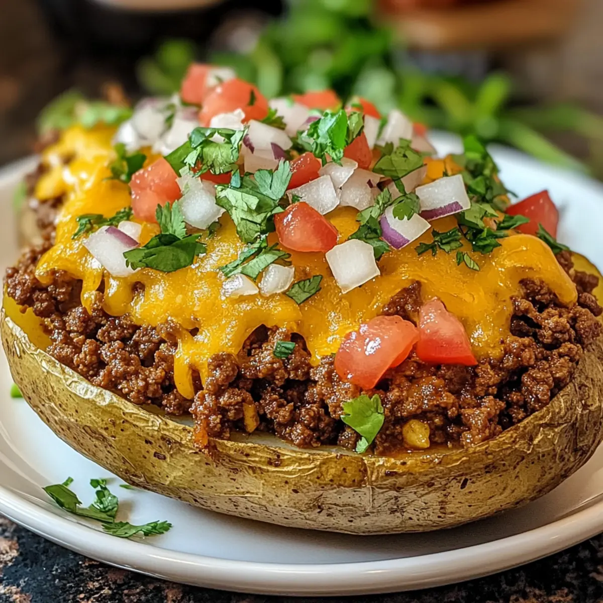 • Gesunde Varianten: Ersetzen Sie das Rinderhackfleisch durch Puten- oder pflanzliche Alternativen, um eine leichte Option für gefüllte Kartoffeln mit beladenem Rindfleisch-Taco zu kreieren.