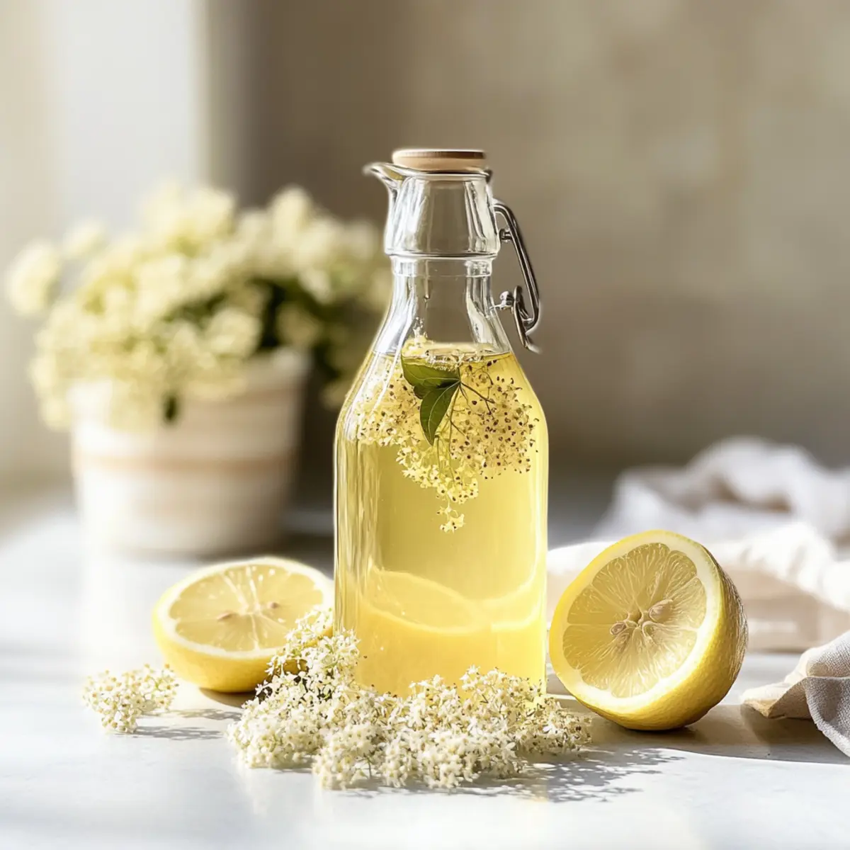 Holunderblütensirup ist ideal für die Vorbereitung im Voraus! Du kannst die Holunderblüten und Zitronenscheiben bis zu 24 Stunden im Kühlschrank im vorbereiteten Zuckerwasser ziehen lassen. Achte darauf, dass du die Blüten sorgfältig und sanft reinigst, um die zarten Aromen zu bewahren. Nach der Infusion (ca. 48 Stunden) solltest du die Mischung abseihen und den Saft von zwei weiteren Bio-Zitronen hinzufügen, damit die frische Säure den Geschmack verstärkt. Wenn du den Sirup in vorgewärmte Flaschen abfüllst und gut verschließt, bleibt er gut bis zu einem Jahr haltbar – so hast du immer einen Hauch von Frühling griffbereit, ideal für spontane Cocktails oder erfrischende Getränke!