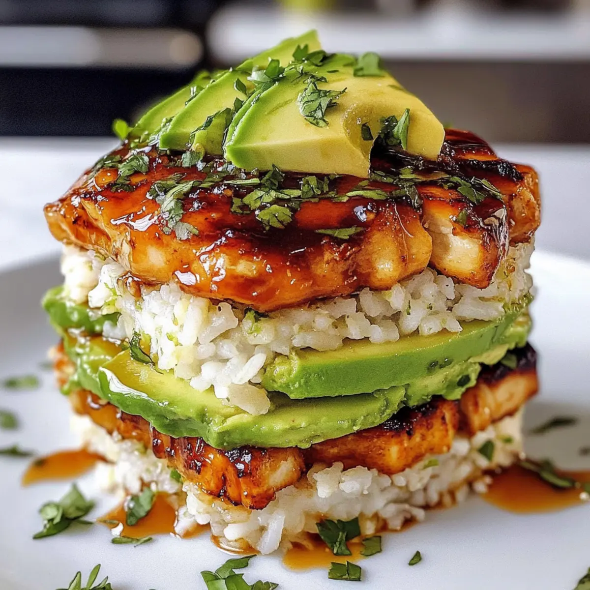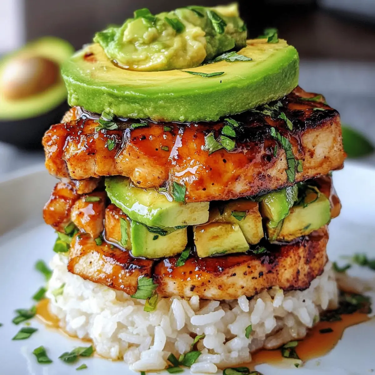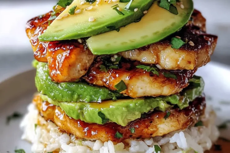 Honey Lime Chicken Avocado Rice Stack tzgdvj