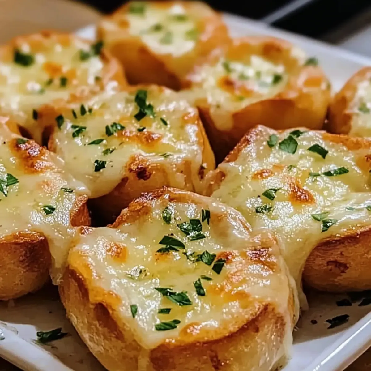 Käsige Knoblauchbrot Häppchen sind der perfekte Snack oder eine köstliche Beilage, ideal für gesellige Abende.