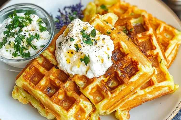 Kräuterquark: Eine frische und cremige Ergänzung, die die herzhaften Aromen der Waffeln perfekt ausbalanciert. Die Kräuter bringen einen zusätzlichen Frischekick, der die Geschmacksnerven belebt.