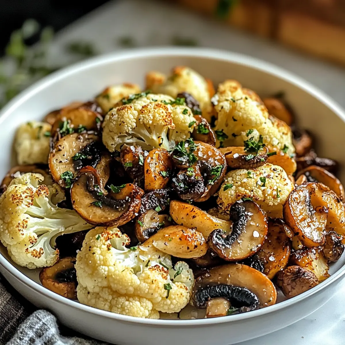 Frische Kräuter: Verwende frische Kräuter wie Petersilie oder Thymian für einen intensiveren Geschmack in deiner Knoblauch-Pilz-Blumenkohl-Pfanne; sie bringen Frische und Aroma, die getrocknete Kräuter oft nicht erreichen.