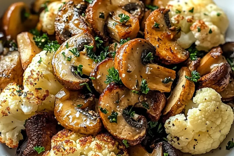 - Kombiniere den gerösteten Blumenkohl mit Pilzen und Knoblauch.