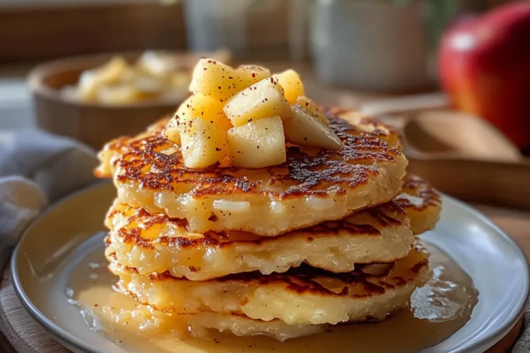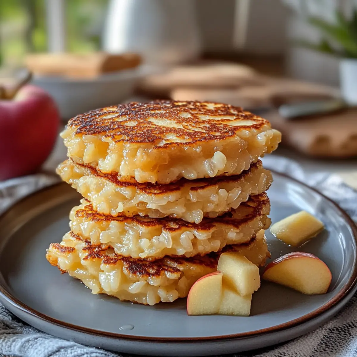 Milchreispuffer mit Apfel Rezept: Knusprige Pfannkuchen mit cremigem Milchreis und fruchtigen Äpfeln als perfektes Frühstück oder Dessert.