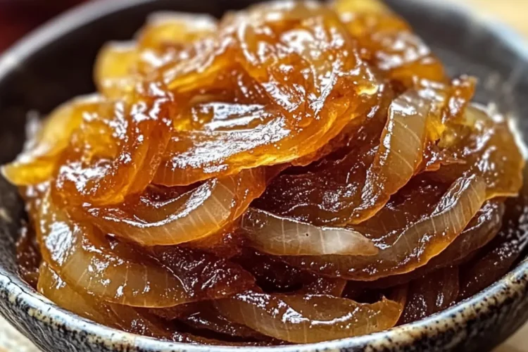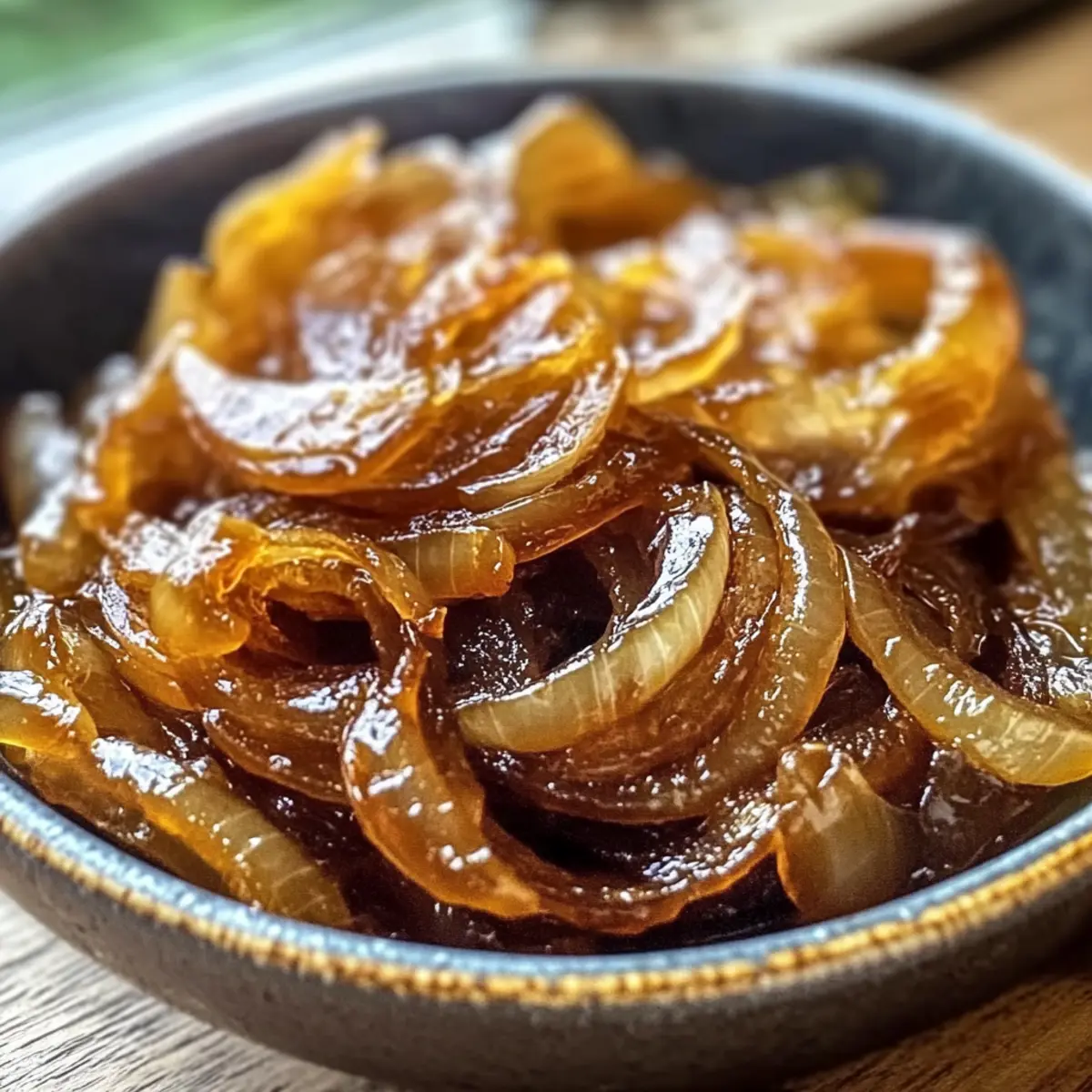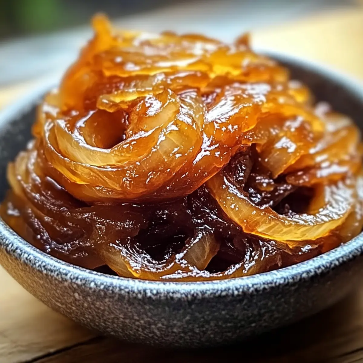 Dessert-Idee: Serviere karamellisierte Zwiebeln als unerwartete Beilage zu Käseplatten, besonders in Kombination mit würzigen Käsesorten – ein wahres Geschmackserlebnis.