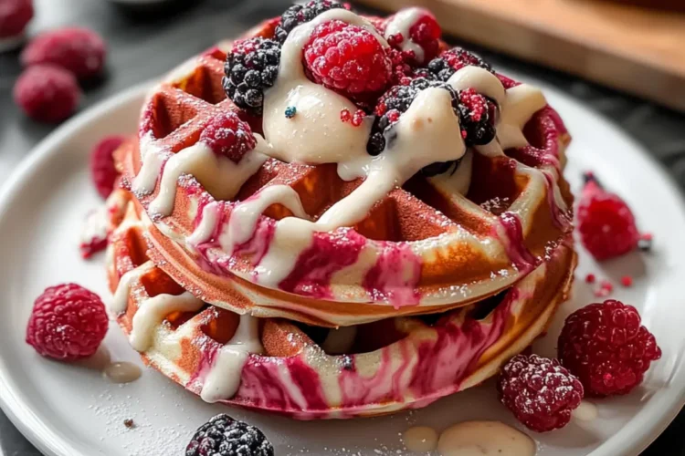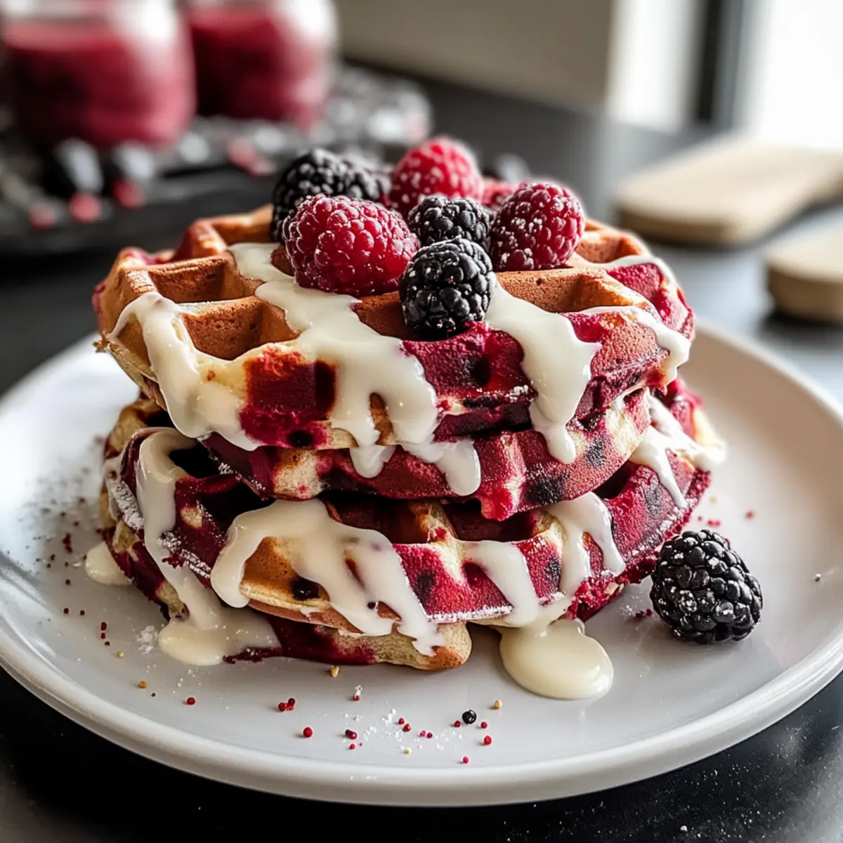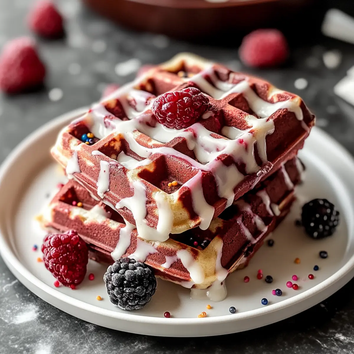 Einzigartiger Genuss: Diese Waffeln kombinieren den wunderbaren Geschmack von Schokolade mit einem eindrucksvollen roten Farbenspiel – perfekt für festliche Anlässe!