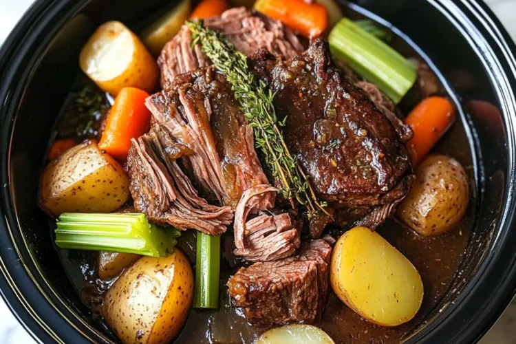 Schmortopf Rinderbraten ist der Inbegriff von Komfortessen, das den ganzen Tag köchelt und die ganze Familie begeistert.