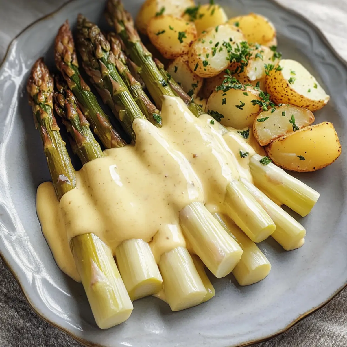 Reichhaltiger Geschmack: Die cremige Sauce Hollandaise ergänzt den zarten Spargel perfekt und sorgt für ein Geschmackserlebnis der Extraklasse.